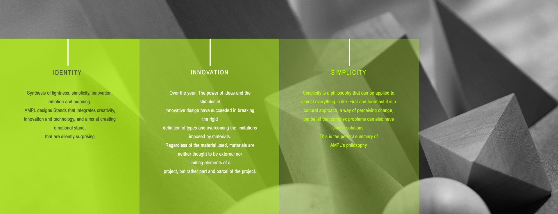 AMPL's Success is rooted in its ability to represent culture, sense and anticiate trends and respond to changes in design as well as the modern requirements of stand.